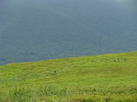 Koniec końców niechętnie pożegnaliśmy gospodarzącego w tych dniach chłopaka oraz bacówkowego psa i zanurzyliśmy się w zieleń. Ów kawałek mapy, który od dawna wydawał mi się niepokojąco długi, i co do którego nie wierzyłam, że uda mi się go przejść bez tonięcia w błocie, okazał się… piękny. Może to sucha pogoda tego dnia, może nasza dobra forma i humor, może po prostu zachwyt morzem zieleni i brakiem ludzi. Było w każdym razie pięknie.