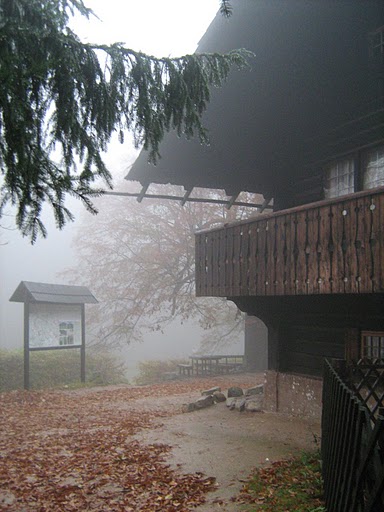 Jesienna aura przed schroniskiem Szwajcarka.Warto w tym miejscu ostrzec, że korzystanie z komunikacji lokalnej wymaga czasu, cierpliwości i zaktualizowanych informacji. Pomysłów na dalsze czy bliższe wycieczki samochodowe na pewno nie zabraknie, bo w promieniu kilkunastu/kilkudziesięciu kilometrów znajduje się mnóstwo ciekawych i atrakcyjnych turystycznie miejsc, z coraz lepiej rozreklamowaną Doliną Pałaców i Ogrodów na czele. Czy ktoś będzie szukać zamków czy wodospadów, zapomnianych miasteczek czy krzyży pokutnych, a może atrakcji specjalnie dla dzieci – na pewno się nie zawiedzie. Wystarczy dobra mapa turystyczna i trochę inwencji.