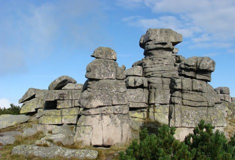 Śląskie Kamienie (czes. Dívči kameny)Robią wrażenie duże różnice wysokości względem głębokich dolin, zwłaszcza po czeskiej stronie (np. Obří důl czy Łabska Dolina). Zaskakują też potężne wypłaszczenia na grzbiecie, dzięki którym czasami trudno uwierzyć, że jest się w górach (najsłynniejszym jest oczywiście Równia pod Śnieżką). Jako, że Karkonosze od dawna należą do gór „ucywilizowanych” i aż nadto rozwiniętych turystycznie, nie powinna dziwić (choć nas nadal trochę dziwi i irytuje) ilość schronisk na grzbiecie i w jego bezpośredniej bliskości. Są to zarówno obiekty naprawdę duże (np. schronisko Odrodzenie czy Strzecha Akademicka), czasami hotelowe (trzygwiazdkowy obiekt po czeskiej stronie Przełęczy Karkonoskiej, znany pod nazwą schroniska, które mieściło się w tym miejscu jeszcze parę lat temu…), jak i „kultowe” miejsca, znane często ze słyszenia nawet tym, którzy jeszcze w nich nie byli (np. Samotnia czy czeska Jelenka).