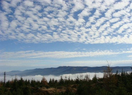 Orle o poranku, przykryte przez niskie chmury. A nad Bukovcem było piękne słońce.