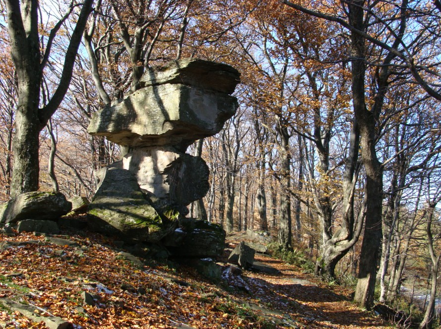 Diabelski kamień przy czerwonym szlaku na Jaworzynę.