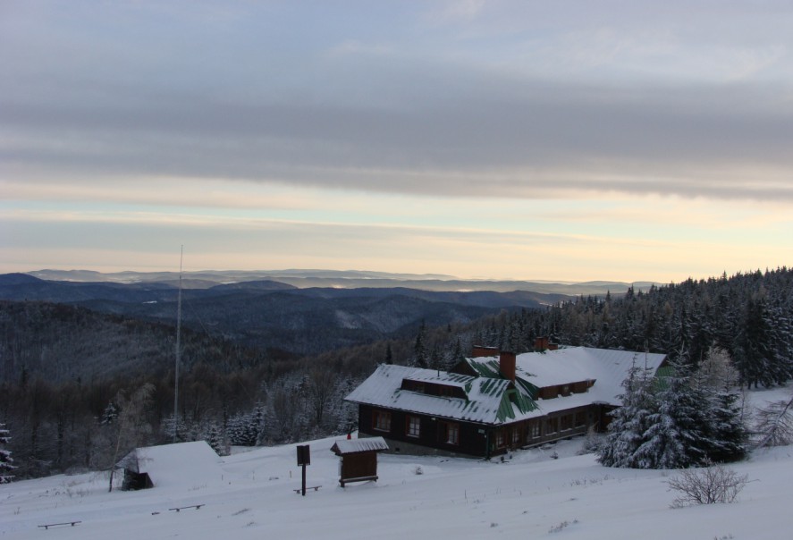 Schronisko na Hali Łabowskiej. Z widokiem na Beskid Niski.Po drugiej stronie doliny Popradu, w Paśmie Radziejowej znajduje się Chatka pod Niemcową. Miejsce, o którym się słyszy, jeśli ktoś chodzi po Beskidach; kultowe i drogie wielu osobom. Chcąc więc poszukać owego słynnego klimatu, stwierdziliśmy, że w naszym przypadku lepiej będzie tam dotrzeć poza sezonem (druga połowa października). Nasz optymizm okazał się być jednak mocno przesadzony, choć mieliśmy informacje, że ma być pusto, koniec końców, chatka była pełna. Cóż, jest to prawo chatki. Szkoda tylko, że wypełniali ją młodzi (gimnazjum?) ludzie, którzy nie za bardzo zważali ani na siebie (to ich sprawa), ani na innych (to już nie tylko „ich”sprawa). Gdy wstawaliśmy o wschodzie słońca, by zacząć kolejny długi dzień, młodzież rozpoczynała kolejną fazę imprezy. Abstrahując od tego doświadczenia, musimy stwierdzić jeszcze dwie rzeczy – po pierwsze, chatka jest położona rzeczywiście sielsko, po drugie, w chatce jest brudno. Piszę „jest”, a nie „było”, gdyż niedawno rozmawialiśmy z pewną osobą, która podobnie jak my (bez osobistych sentymentów, ale i bez uprzedzeń), chciała „przekimać” na Niemcowej, by po prostu zobaczyć, jak tam jest. Osoba ta powiedziała dokładnie to samo: naprawdę fajna chatka, pięknie położona, ale niestety brudna. I nie jest prawdą, że tego typu miejsc nie da się utrzymać w czystości. (Niech pozytywną kontrą będzie tu choćby przykład Pietraszonki – gdzie nie tylko jest czysto i schludnie, ale również nocne nasiadówki nie eliminują możliwości snu dla tych, którzy padają po całym dniu (naprawdę da się!). Więcej o owej chatce we wpisie ze stycznia 2011 – O Beskidzie śląskim (nie) tylko pozytywnie ).