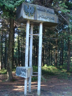 A na Radziejowej, obok wieży straszy pamiątka z przeszłych czasów(tysiąclecie Państwa Polskiego + rzekomy jubileusz PTTK – jakie ciekawe połączenie :).