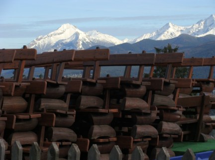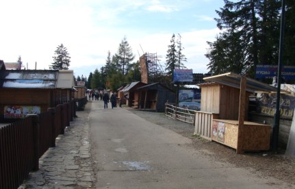 Widok z Gubałówki przesłonięty przez poskładane ławy. Nie oznaczały one bynajmniej, że bary i restauracje były puste…Fakt jest faktem, dawno mnie tam nie było, ale to, co zobaczyłam zaskoczyło mnie bardziej niż przypuszczałam. Szczyt Gubałówki jest mini-miasteczkiem (w charakterze bazaru, bądź rozbudowanego festynu) składającym się przede wszystkim ze straganów oraz punktów gastronomicznych o różnej wielkości (od małych, ruchomych budek po spore restauracje).