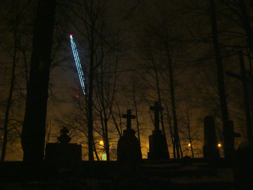 Billboardy przy zakopiance głosiły, że otwarcie 16 XII. Nie wyrobili się, czy znaleźli atrakcyjniejszy termin?… Wcale nieśnieżna zima, a na Krupówkach jak zwykle ciężko zobaczyć kostkę brukową… Parking pod Gubałówką. Chyba nikt się nie łudzi, że w Zakopanem powietrze wciąż leczy… Smog na miastem jest częstym problemem.Na koniec, podobnie jak w poprzednim wpisie – cmentarz przy Pęksowym Brzyzku. Wydawałoby się, że święta Bożego Narodzenia (podobnie jak Wielkanoc), to – prócz czasu Wszystkich Świętych – ten okres, gdy o zmarłych się pamięta. Miejskie czy wiejskie, cmentarze znów są bardziej posprzątane, w dużej mierze przyozdobione czy rozświetlone. Pęksowy Brzyzek 26-go grudnia zeszłego roku nie nosił nawet pozoru tego, że było tam „świątecznie”. Jedyne kilka zniczy paliło się przy najświeższych stosunkowo pochówkach… Nie ma widać kto pamiętać o tych, którym Zakopane tak wiele zawdzięcza… Zamiast tego można zrobić zdjęcie z oświetlonym dźwigiem spod Gubałówki, z którego skacze się na bungee. Potworkiem, który zresztą szpeci panoramę miasta z wielu stron…