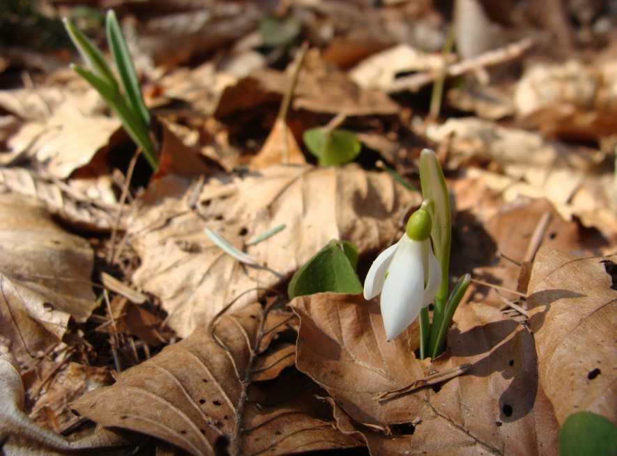 Ale, ale – żeby tak pięknie wyglądać, małe przebiśniegi muszą najpierw stoczyć nie lada walkę… ze ściółką, zwłaszcza z liśćmi buków.