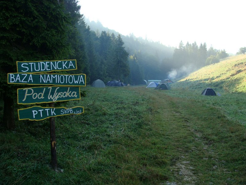 Prowadzona w miesiącach wakacyjnych przez łódzkie SKPB baza wciśnięta jest między zbocze Polany pod Wysoką a koryto potoku Kamionka, rzut beretem od Wąwozu Homole i Jaworek oraz trochę bardziej wymagający (pod)rzut beretem od Wysokiej właśnie. Wypłaszczenie, które zajmuje baza, to całkiem spora powierzchnia, gdzie miejsce znajdują co roku namioty bazowe, wiata z kuchnią i jadalnią, pozostaje też naprawdę spory kawałek pod rozbicie własnych namiotów.