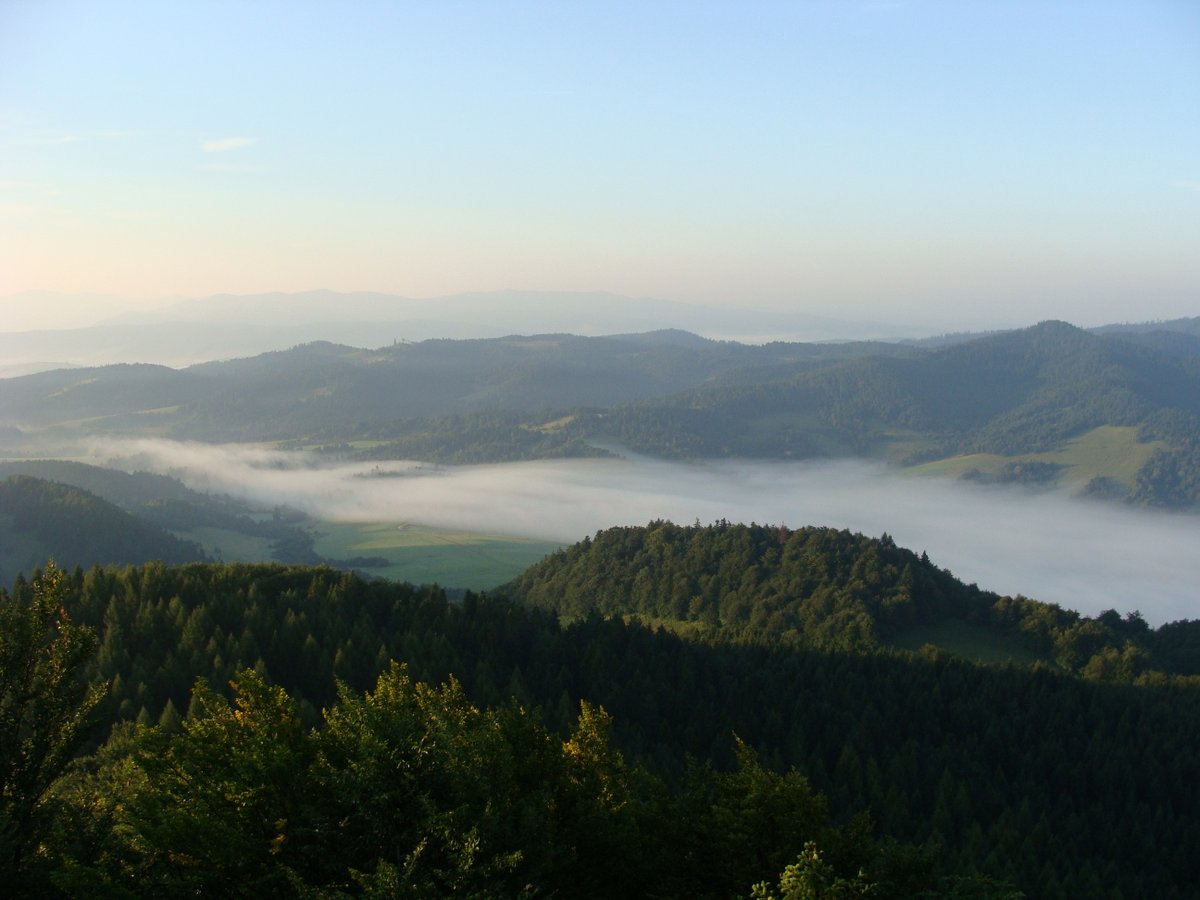 Można w kameralnym towarzystwie zjeść śniadanie na szczycie… …patrzeć na Tatry… …szukać wzrokiem Beskidu, co ginie we mgle… …czy Gór Lewockich… …znów dziwić się, że Te-tam-na-horyzoncie są takie wielkie… …i odpłynąć… …ku Pieninom Właściwym… …i jeśli (o ile w ogóle) komuś zazdrościć, to chyba tylko tym, co (może) są na Trzech Koronach – bo choć nieco niższe, to stamtąd widok 360°… …ale my chyba nikomu żeśmy nie zazdrościli…