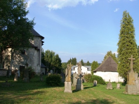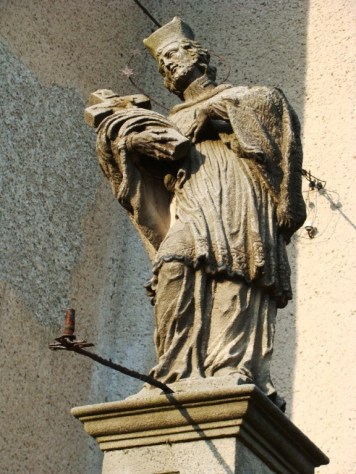Nie ma Nepomucena nad rzeką, ale jest przy kościele (1725). Cmentarzyk przykościelny…… a na nim smutne pamiątki (po)wojennej zawieruchy. Zdefragmentowane nagrobki i płyty ułożone są przy cmentarnym murku…