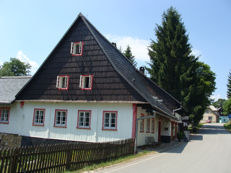Pierwsza z nich jest wcale nie najmniejszą wioską, w której można obejrzeć (nie tylko z zewnątrz) kościół, kilka przydrożnych, kamiennych figur, a jeszcze więcej ładnych, zadbanych domów. W kilku miejscach można zjeść i oczywiście przenocować. Szosą przemykają cykliści (to zdecydowanie optymalny i najczęściej praktykowany przez Czechów sposób zwiedzania Orlickich hor latem; w zimie oczywiście zamieniają rowery na biegówki) oraz pojedyncze samochody… Cicho, spokojnie, dość sielsko.