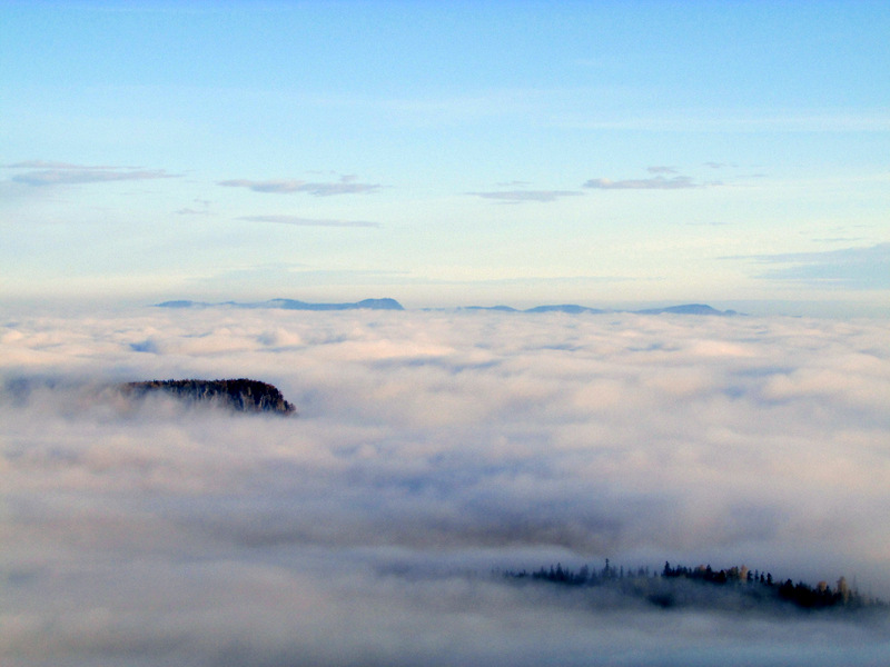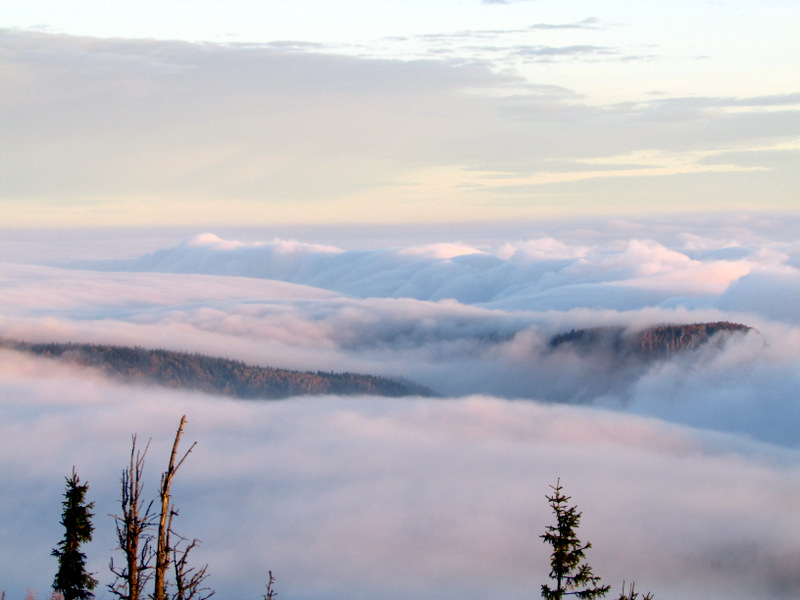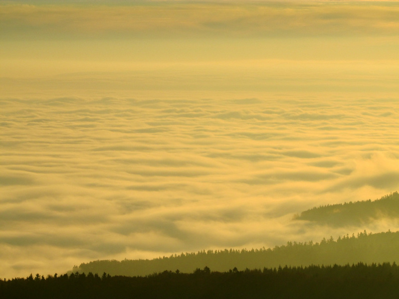 Na koniec będzie o tym za co pokochaliśmy jesień bez pamięci – spektakle chmur i mgieł. Szczeliniec (również dzięki położeniu schroniska niemal na samym szczycie) jest doskonałym punktem widokowym, który potencjalnie wręcz idealnie nadaje się do obserwowania morza mgieł. Jak to może wyglądać? Ano tak: