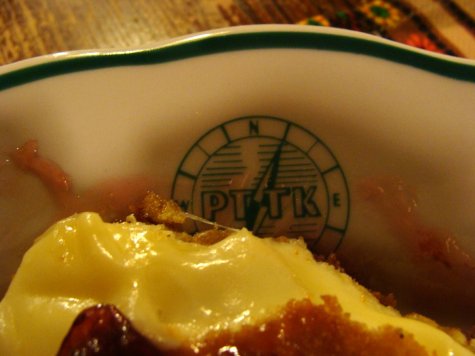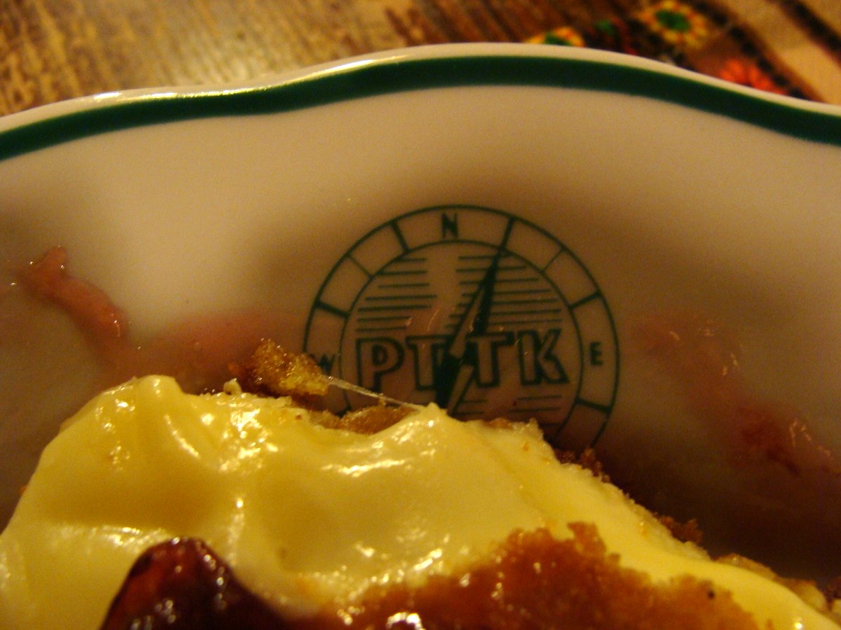 W Beskidzie Śląskim w schronisku na Stożku…Gdy porcja jest nałożona od serca, w zależności od poziomu głodu osoby, która posiłek zamówiła, mija krótsza lub dłuższa chwila aż logotyp zdobiący talerz objawi się w pełnej krasie…