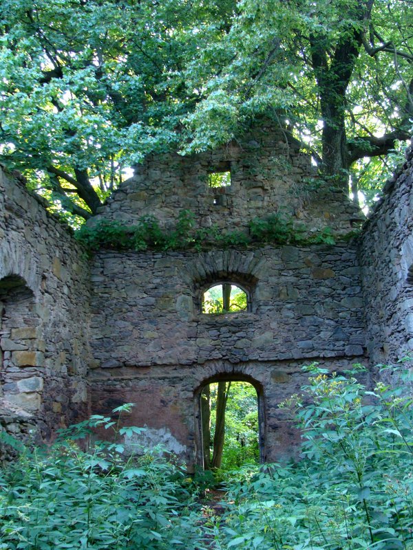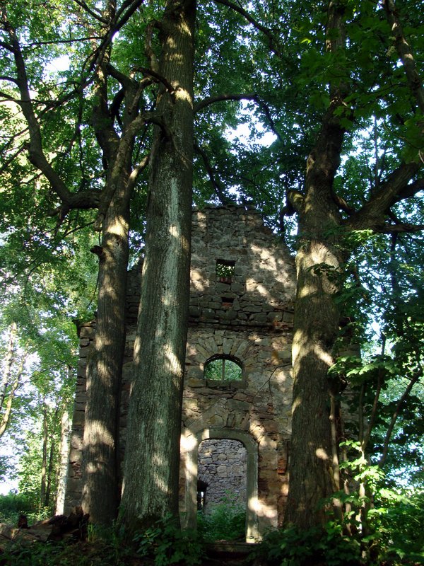 Najlepiej zachowanym materialnym świadectwem jest to, co pozostało po kaplicy, niegdyś kościele parafialnym. Pomimo – jakby nie patrzeć – skromnych rozmiarów, ruiny wśród zielonego lasu i potężnych drzew robią niesamowite wrażenie.