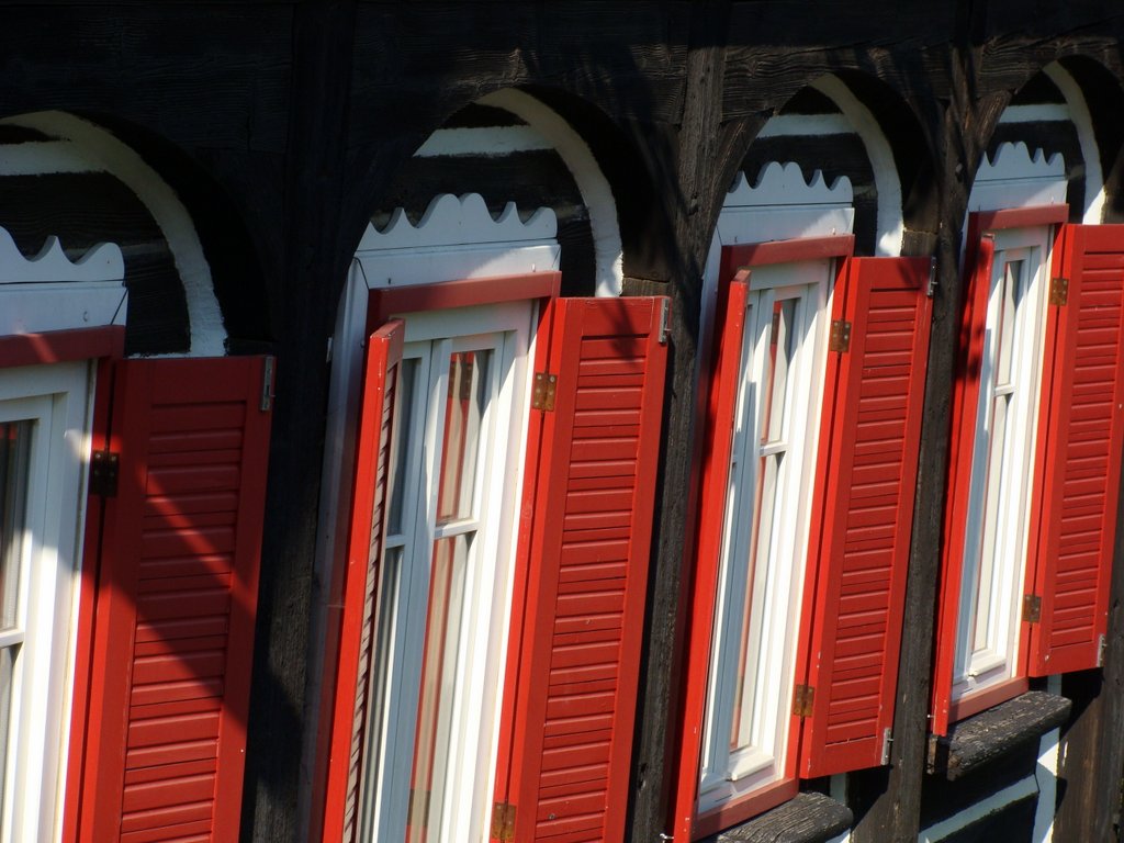 Przy dobrej pogodzie większośc pasażerów wąskotorówki wybiera niezadaszone wagony.Choć w uroczym pociągu było całkiem sporo ludzi, to okazało się, że większość z nich od razu jechała z powrotem. Podróż jest atrakcją samą w sobie, a turyści wychodzący w góry chyba jednak częściej podróżują własnymi samochodami. Jonsdorf, mimo fantastycznej pogody oraz wakacyjnej soboty, wydał nam się zwyczajnie pusty, niemalże uśpiony. Zwracały naszą uwagę piękne, zadbane domy; tu i ówdzie rzucał się w oczy elegancki szyld informujący, że jest do wynajęcia pokój na urlop dla dwóch osób (nie chcę wiedzieć, ile taka kwatera może kosztować i ile nocy to przyjęte minimum).