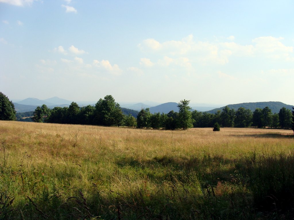 Przy skrzyżowaniu szlaków i przejściu granicznym (Waltersdorf), na wschód od Luža, po czeskiej stronie przyczaił się niewielki bufet. Informuje o nim potykacz.Podejścia potrafią być całkiem honorne, czytaj: można się zmęczyć. Widoki za to robią wrażenie: mnóstwo stożków przypominających wulkany to jedno, natomiast góry potężniejsze, a dalsze – to drugie. Można przyglądać się Ještědowi, Karkonoszom, Górom Izerskim. Choć do tego o niebo lepsza jest widoczność jesienna lub zimowa, my – mimo kiepskiej przejrzystości powietrza – nie narzekaliśmy. Jedno jest pewne – morza mgieł muszą być tutaj bajeczne…