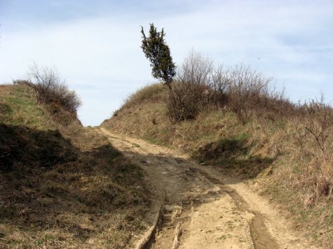 Po obydwu stronach drogi można wypatrzeć pozostałości po domostwach – pagóry ruinowe: