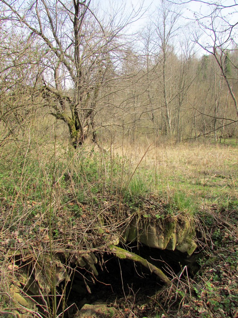 Po obydwu stronach drogi można wypatrzeć pozostałości po domostwach – pagóry ruinowe: