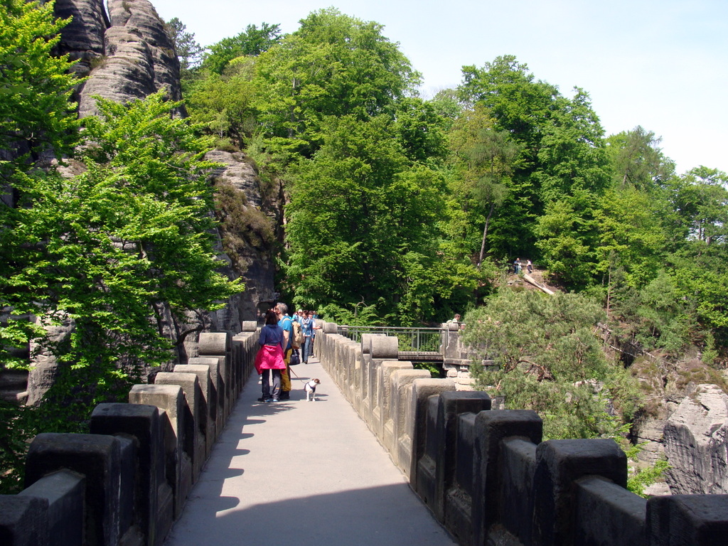 Tutaj (a dokładniej przed mostem) na chwilę żeśmy się rozdzielili – jedno z nas poszło na płatną ścieżkę (2 euro; robi się niewielkie kółko, w zależności od tłoku ok. 10-15 minut), wiodącą w miejscu, gdzie znajdował się niegdyś zamek Neurathen, a z którego obecnie można podziwiać Bastei.