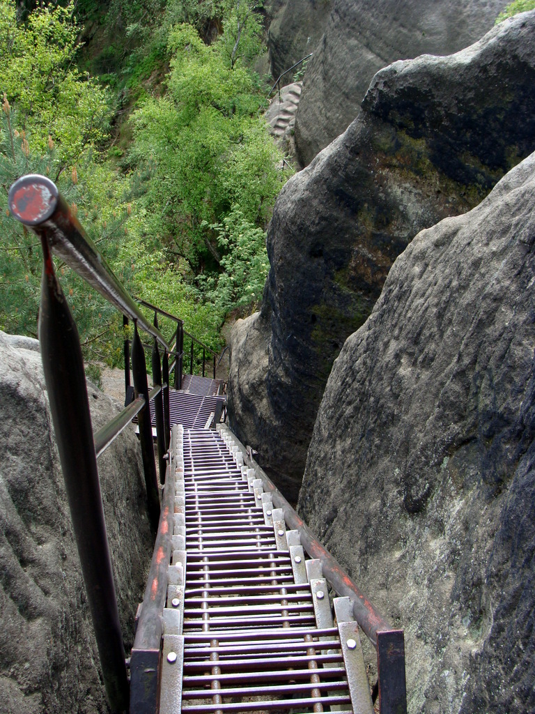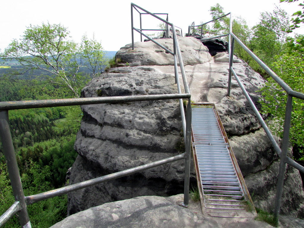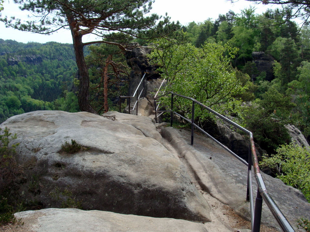 …wreszcie systemem dobrze ubezpieczonej ścieżki można było się dostać na popularny punkt widokowy (Schrammsteinaussicht).