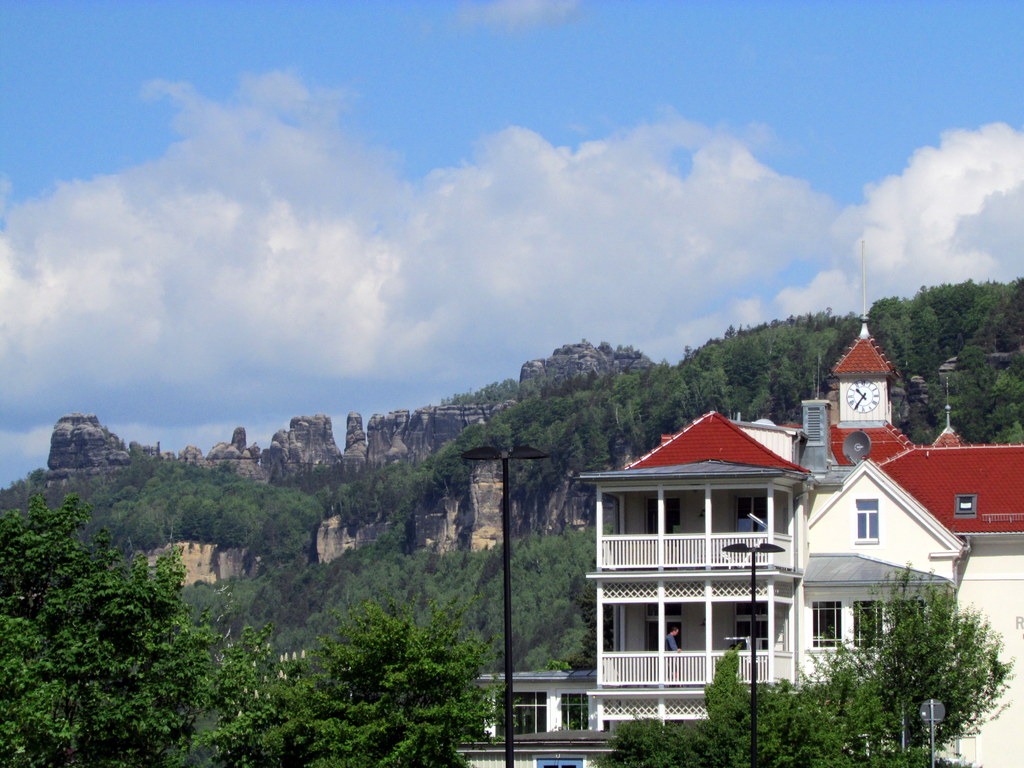 Jak bowiem nazwać niepełne trzy dni na terenie tego popularnego turystycznego raju?.. Zobaczyliśmy to, co najbardziej znane, czyli Bastei. Ponadto spędziliśmy rewelacyjny dzień w rejonie Schrammsteine. W tak zwanym międzyczasie przemieszczaliśmy się (pociągami, piechotą i promami) tak, by dotrzeć z kempingu na szlak lub ze szlaku na kemping. Dzięki temu udało się zobaczyć a to urocze miasteczko, a to piękny widok, który inaczej zostałby przez nas ominięty… Z drugiej strony wiele atrakcyjnych miejsc, które były de facto po drodze (czy w pobliżu naszej trasy) musieliśmy odpuścić, gdyż zwyczajnie nie sposób obejrzeć wszystko w tak szalenie krótkim czasie. Tak więc by móc się choć trochę nacieszyć odwiedzanymi przez nas miejscami, z drugiej zaś nie spieszyć się za bardzo i nie czuć się fizycznie wyczerpanym każdego wieczora, mieliśmy solidne postanowienie, by nieco zwolnić (jeśli nawet nie zawsze dosłownie, to przynajmniej w przenośni).