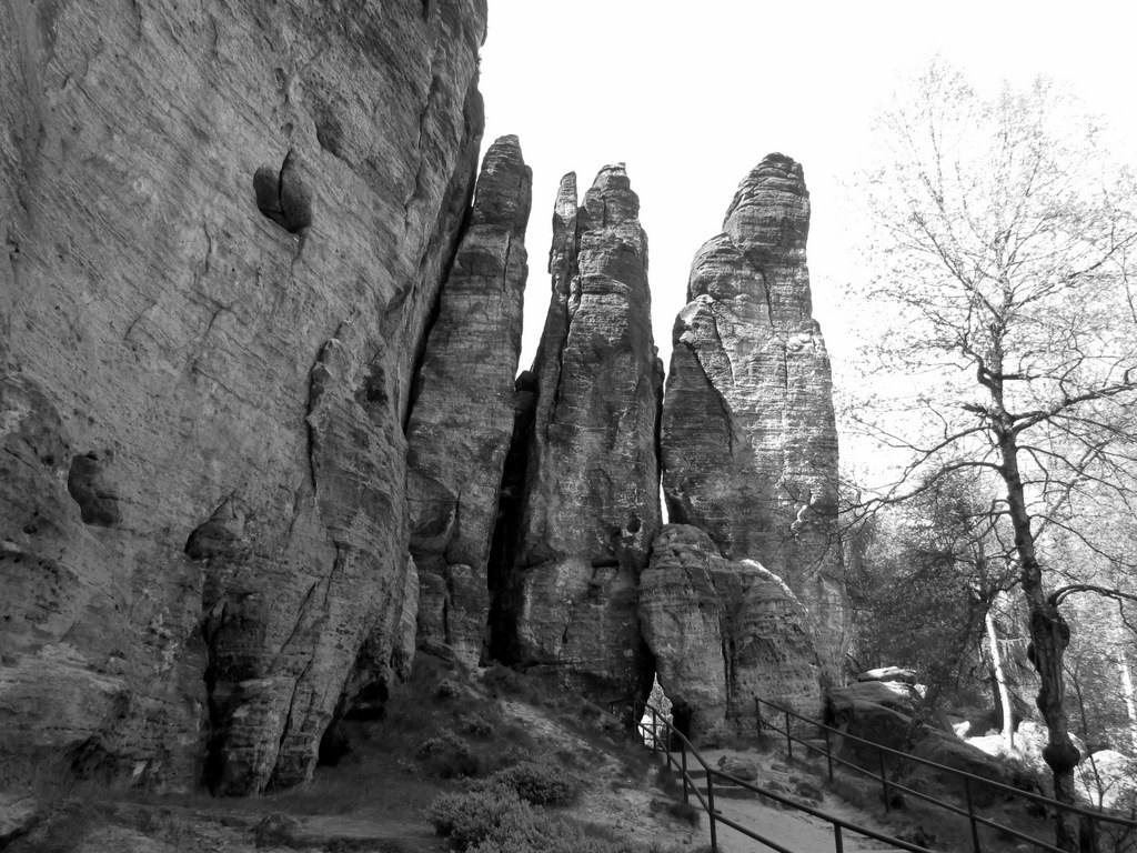 Ciąg dalszy, bo kraina nazywana po czesku Labské pískovce obejmuje swoim zasięgiem również Czeską Szwajcarię, o której opowiadaliśmy w poprzednim poście. Tiské stěny znajdują się 20 km na zachód od Děčína położonego o tyleż kilometrów na południe od Hřenska*. Tak więc to niedaleko nawet dla turysty, który nie porusza się własnym samochodem. Lokalne autobusy, dobrze ze sobą skomunikowane, spokojnie dostarczą nas do podnóży piaskowcowego skalnego miasta. Większość osób wyrusza na ścieżki, które przez nie przebiegają, z niewielkiej Tisy.