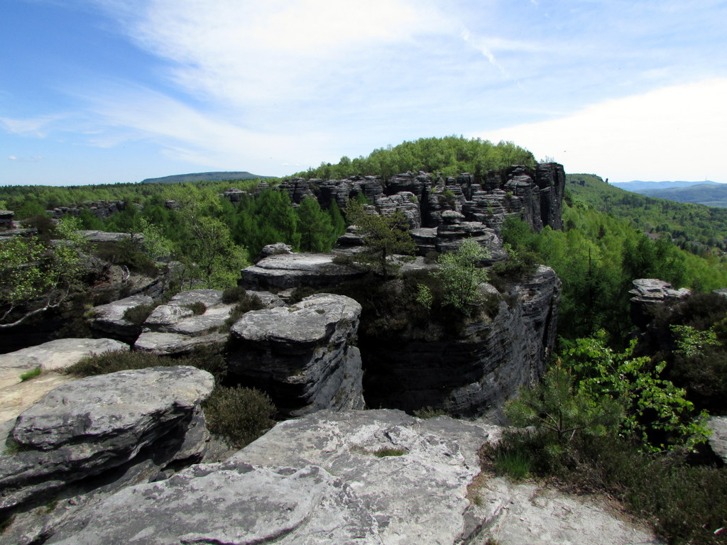 Większość turystów przybywających pod skały samochodami łączy tą wycieczkę z wejściem na szczyt niedalekiego Děčínskego Sněžníka (choć „szczyt” to może nie do końca odpowiednie słowo). Dla piechurów dobra wiadomość jest taka, że spokojnie można to zrealizować również bez podjeżdżania. Ale o tym jak wyglądał Děčínský Sněžník z bliska oraz co było z niego widać, opowiemy następnym razem.