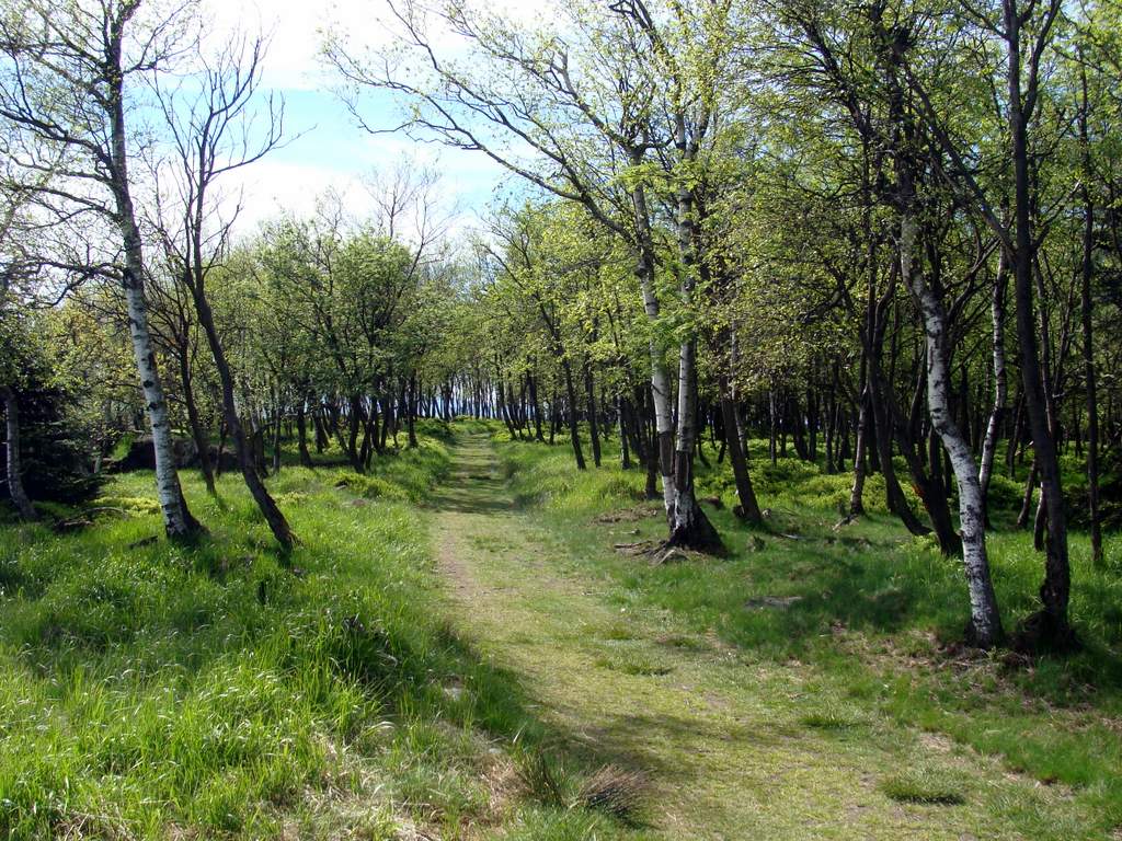Szlak prowadzi najpierw asfaltową drogą, następnie odbija w miły lasek, po czym bardzo sprawnie wyprowadza na wierzchowinę.
