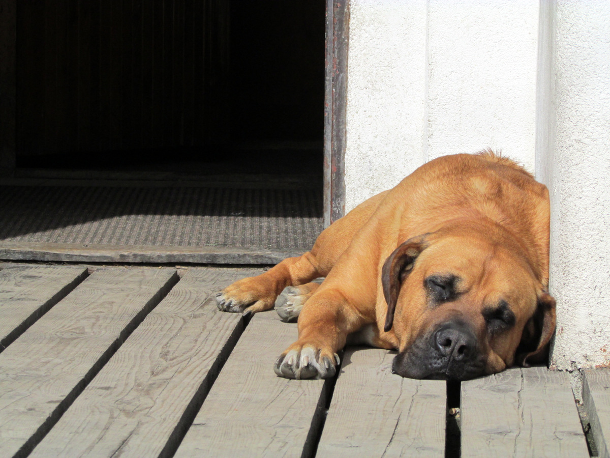 …a w jej okolicach – wielki, ale niezwykle łagodny pies.