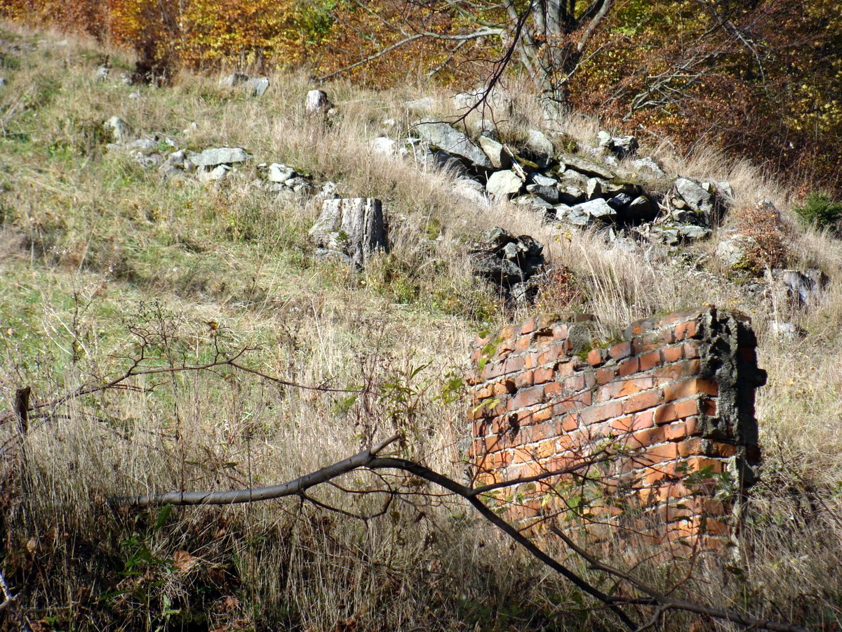 Zanim szlak wprowadzi nas na drogę tnącą zbocze i łągodnie wspinającą się ku górze, nawet niezbyt wprawne oko będzie mogło dojrzeć na zboczu zarówno ceglane, jak i kamienne dowody na to, że kiedyś stały tutaj budynki.