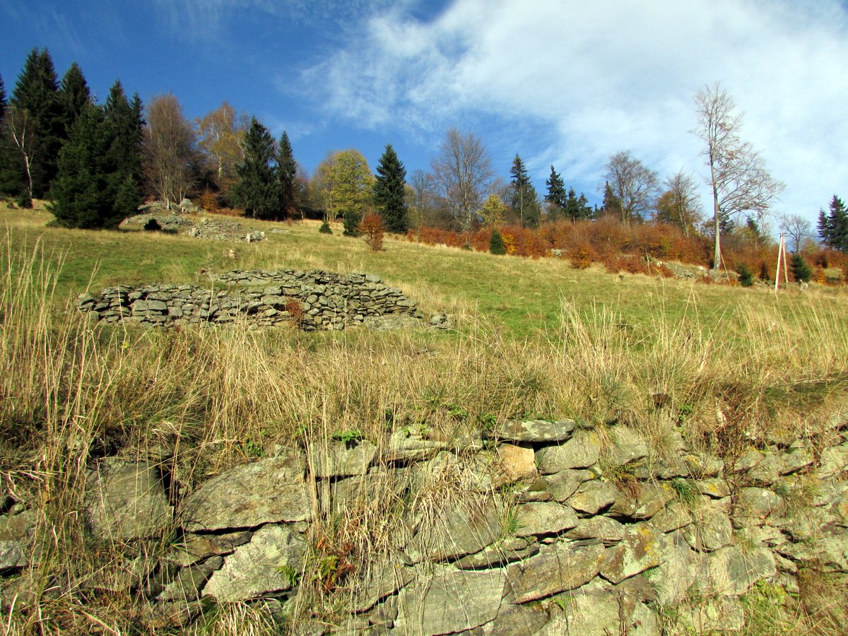 Czas wrócić do wędrówek po miejscach, które choć – niejednokrotnie – cechują się wyjątkową urodą, są jednak często omijane lub niezauważane (dosłownie) z powodu niewiedzy i/lub nieumiejętności odczytywania elementów krajobrazu. A tak jak już kiedyś wspominaliśmy, jesień jest dobrą porą (choć nie tak idelną jak bezlistna wiosna) do poszukiwania śladów po nieistniejącyh już wsiach i osadach, o których w tym cyklu piszemy.