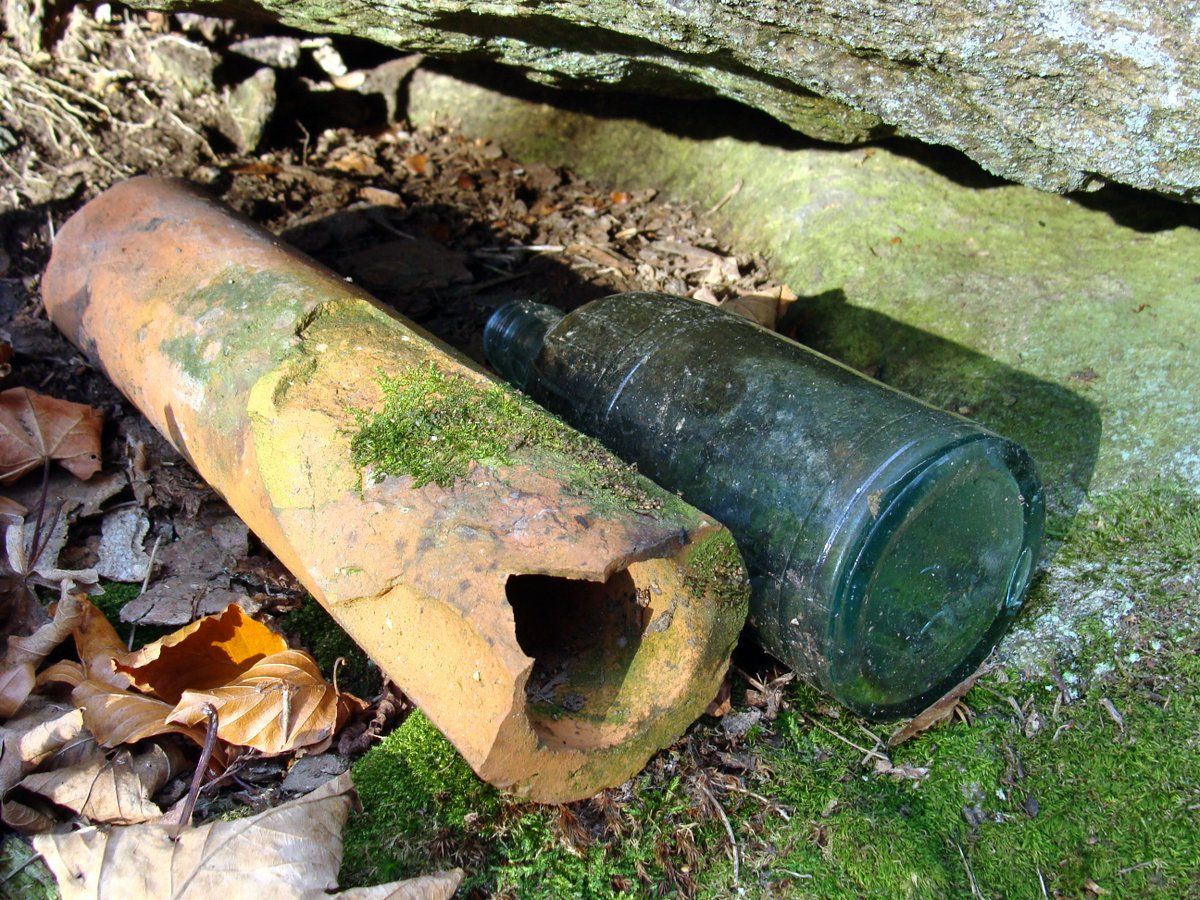 …jeszcze łatwiej dostrzeżemy nie tylko pozostałości podmurówek, ścian czy umocnień, ale również inne relikty, które dają nam obraz, że jeszcze nie tak dawno temu teren ten był zamieszkały…