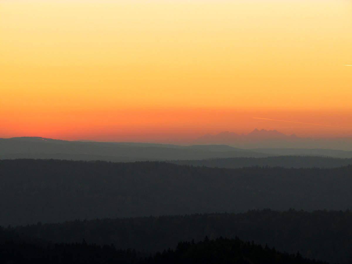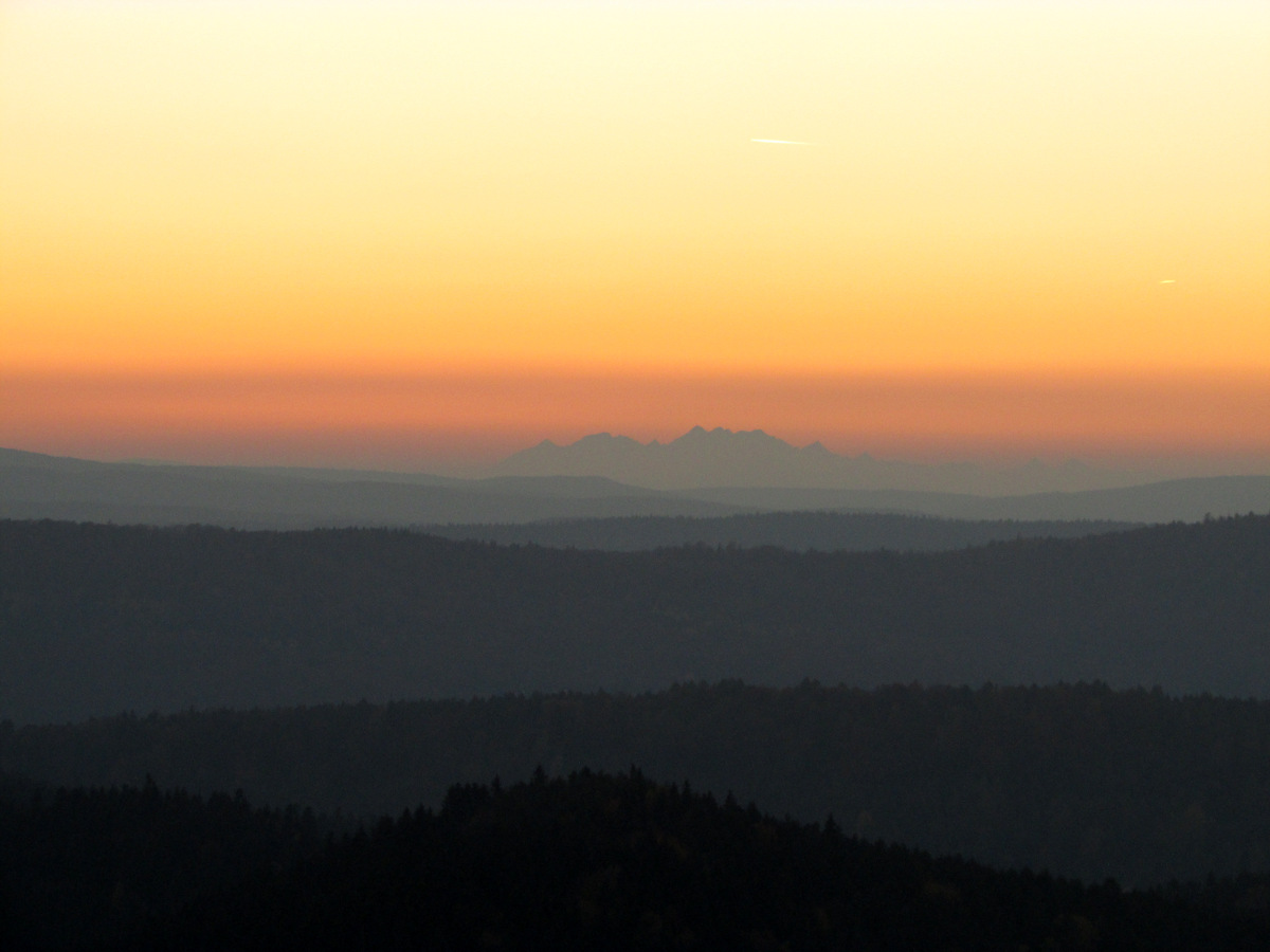 Rano też poszliśmy na spacer. Przymrozku nie było, szanse na dalekie obserwacje zmalały więc gwałtownie, choć nieśmiałe zarysy Tatr faktycznie były dostrzegalne (zdjęcia potwierdziły domysły). Na nikim to jednak nie zrobiło wrażenia, chwilę wcześniej bowiem naszym oczom ukazała się biegnąca zboczem wataha wilków. Zbyt szybkich, by aparat mógł mieć jakiekolwiek szanse…