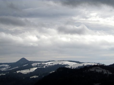 Biało po ostatniej dobie, z nieba pada mokry śnieg, wieje, za chwilę chwyci mróz.