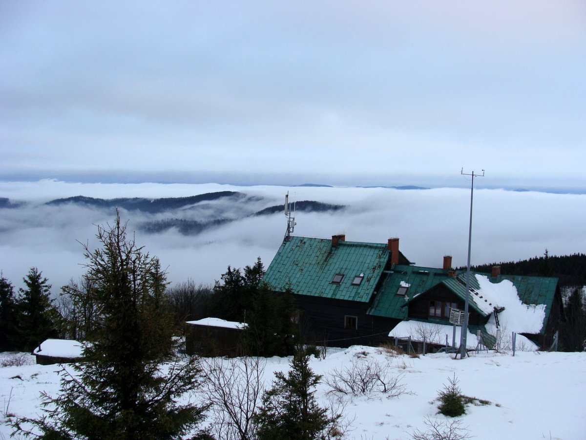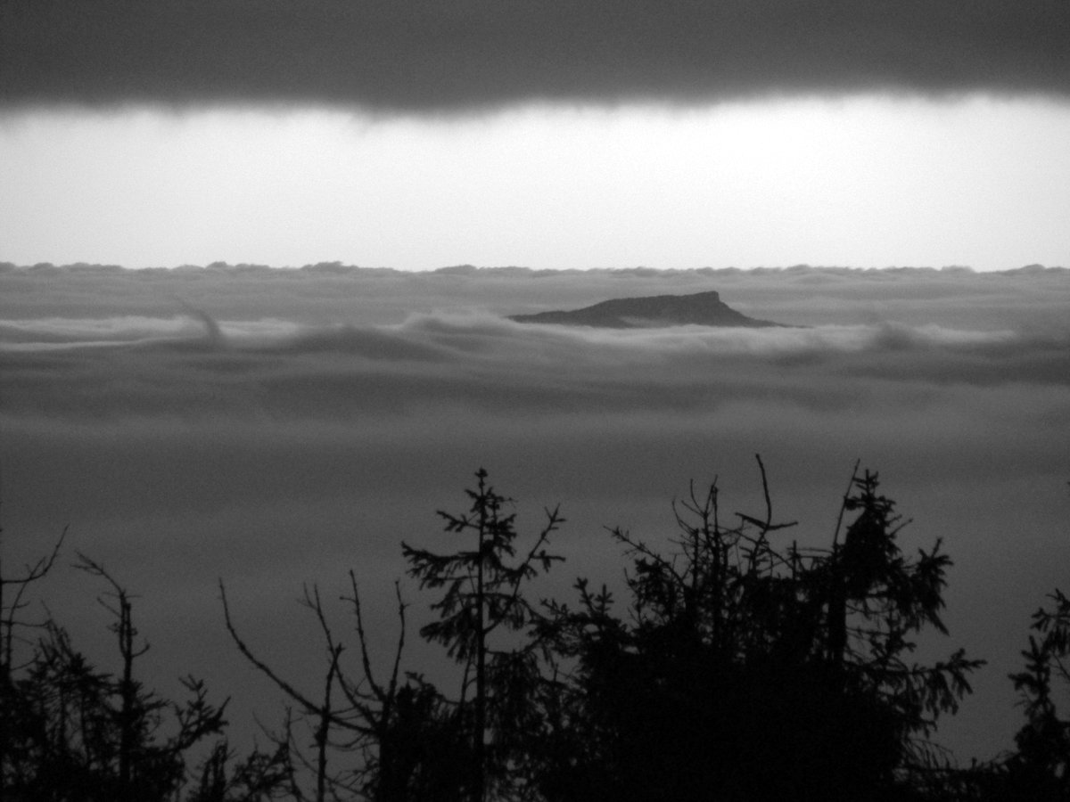 …jakkolwiek zbliżanie się do tego miejsca zawsze napawa nas (fakt, czasami irracjonalną) nadzieją, że może coś się jednak wydarzy (jak nie tego dnia, to może następnego o świcie). Gdy weszliśmy na szczyt (1236 m n.p.m.), okazało się, że (hurra) jesteśmy ponad chmurami.