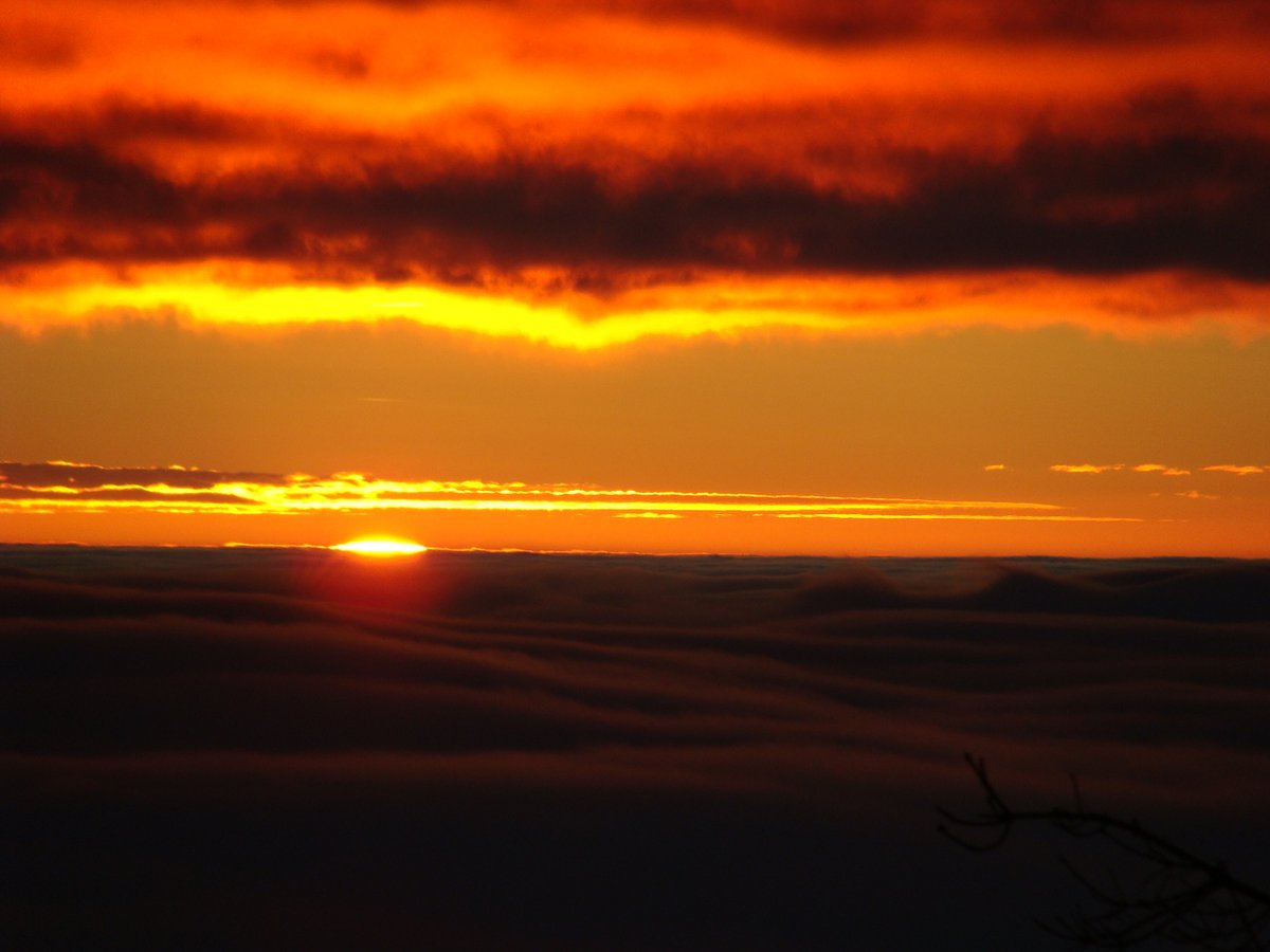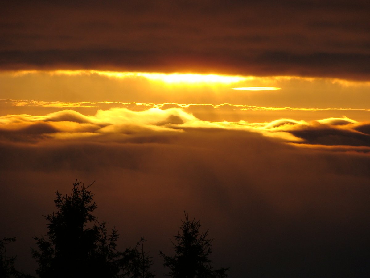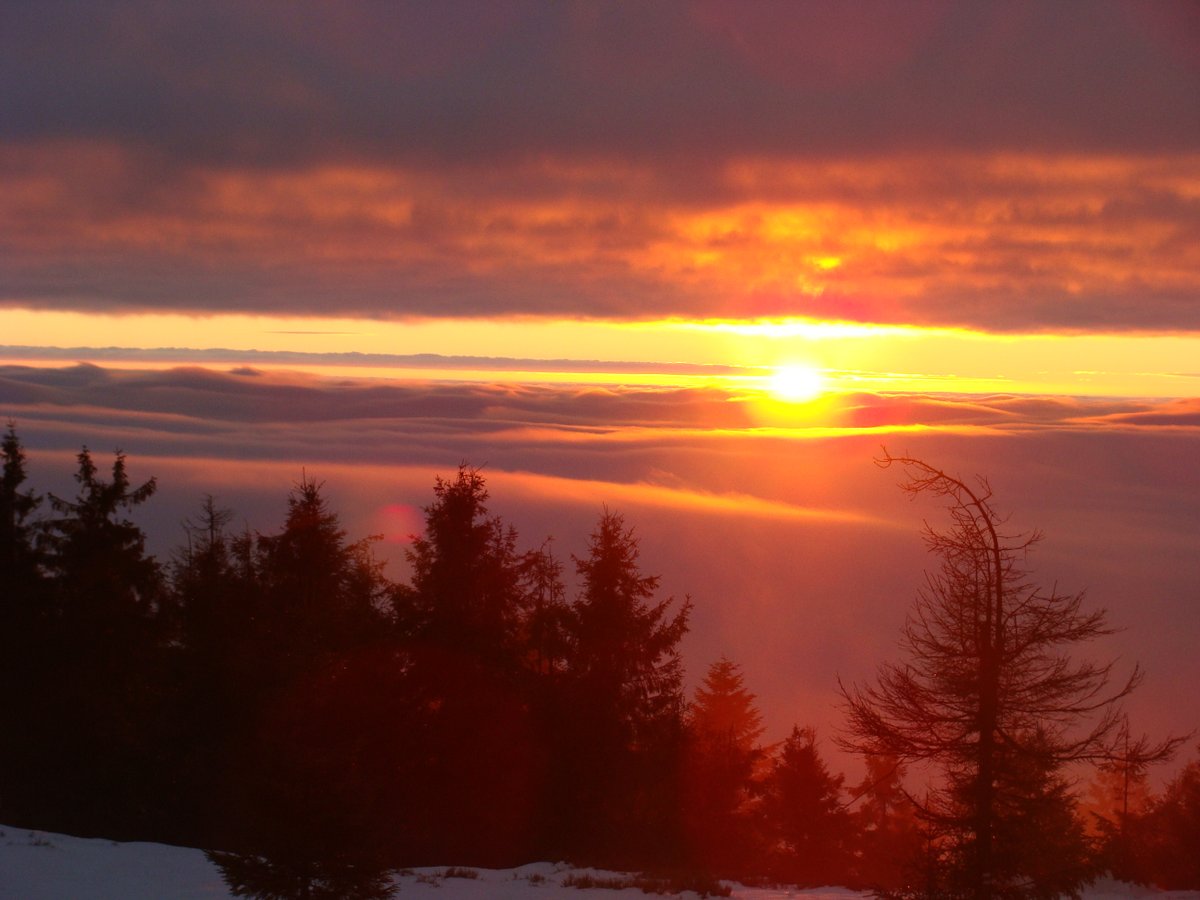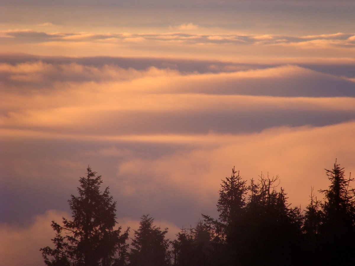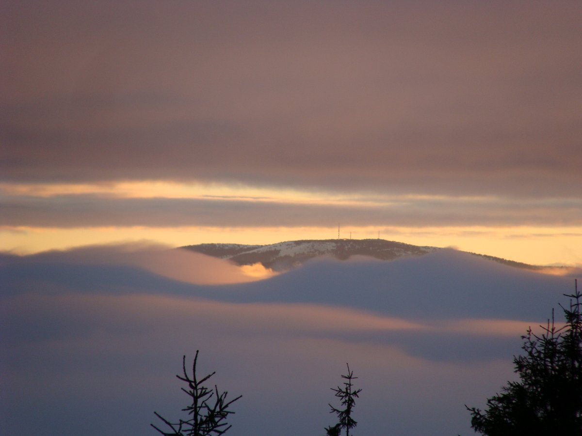 Choć doskonale wiemy, że morze chmur można (przy pewnej dozie szczęścia) zobaczyć o każdej porze dnia, to jednak instynktownie kojarzy nam się ono ze świtem. Najbardziej efektowne zjawiska tego rodzaju obserwowalismy właśnie wtedy. Jednak i koniec dnia jest w stanie zapewnić niesamowity spektakl. Przecież słońce znów jest nisko, a to ono rządzi wspaniałością widowiska… Oto jak wyglądało to pewnym grudniowym popołudniem na Wielkiej Raczy…