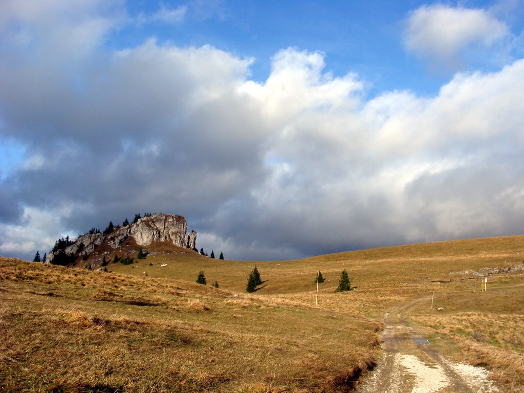 Mimo cokolwiek ponurej aury, spotkaliśmy m.in. parę z maleńkim dzieckiem w nosidle (pod kurtką) oraz licznych rowerzystów, dzielnie walczących z błotem pod kołami. Ruch na grzbiecie był, ale widać było zasadniczo ludzi dobrze przygotowanych (ot, taka różnica między turystyką „tam” a „tu”). Niestety, spacer zakończyliśmy trochę wcześniej niż planowaliśmy, gdyż smagający nas wiatr i wszechogarniająca mokrość dały mi trochę popalić i stwierdziłam, że żadna Krížna (czy nawet Ostredok) nie są warte mojego przeziębienia się w ciąży. Poślizgnięcie się na błocie utwierdziło mnie jedynie w tym, że decyzja o powrocie do hotelu była słuszna. Powróciliśmy więc pokornie i zasiedliśmy w bufecie (grupa właśnie wychodziła, bo internet powiedział, że wkrótce ma się przejaśniać…). I wydawałoby się, że już nic się tego dnia nie wydarzy (powoli zbliżała się godzina naszego odjazdu), a jednak… W pewnym momencie naprawdę pogoda zaczęła się zmieniać. Nasz mały cud się wydarzył, a nam było dane przez krótką chwilę poczuć, jak bajkowo musi być w Wielkiej Fatrze słoneczną jesienią…